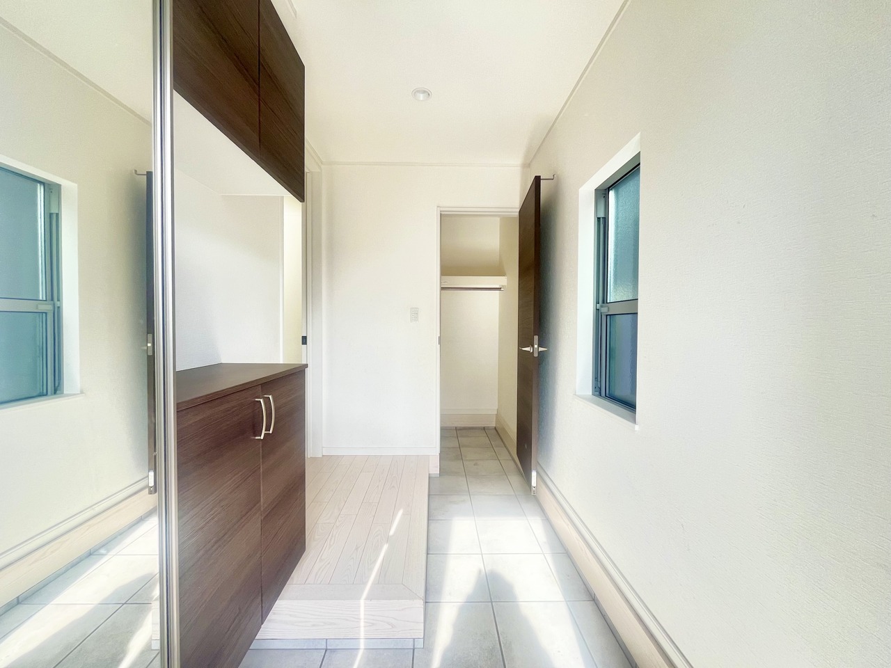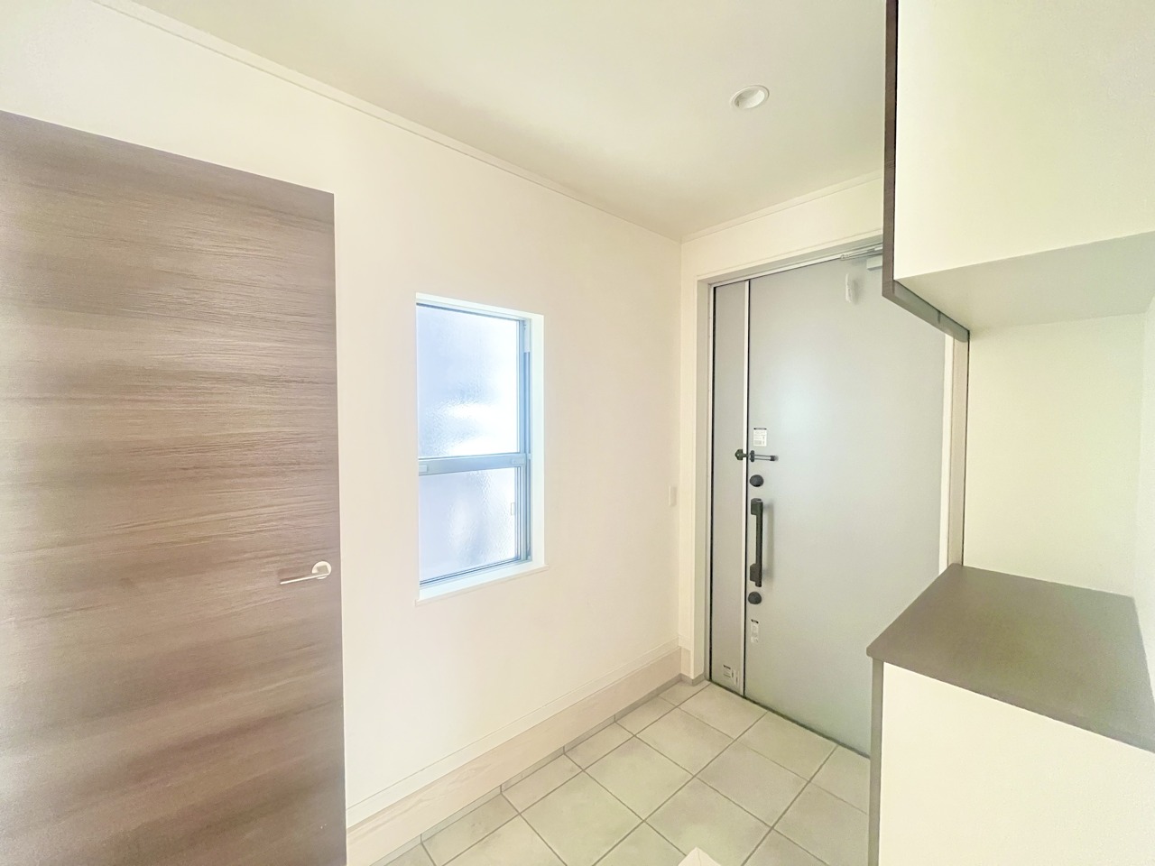 明るく開放的な玄関、靴の脱ぎ履きもしやすく、収納も豊富でご家族皆様の靴をスッキリ収納できます。