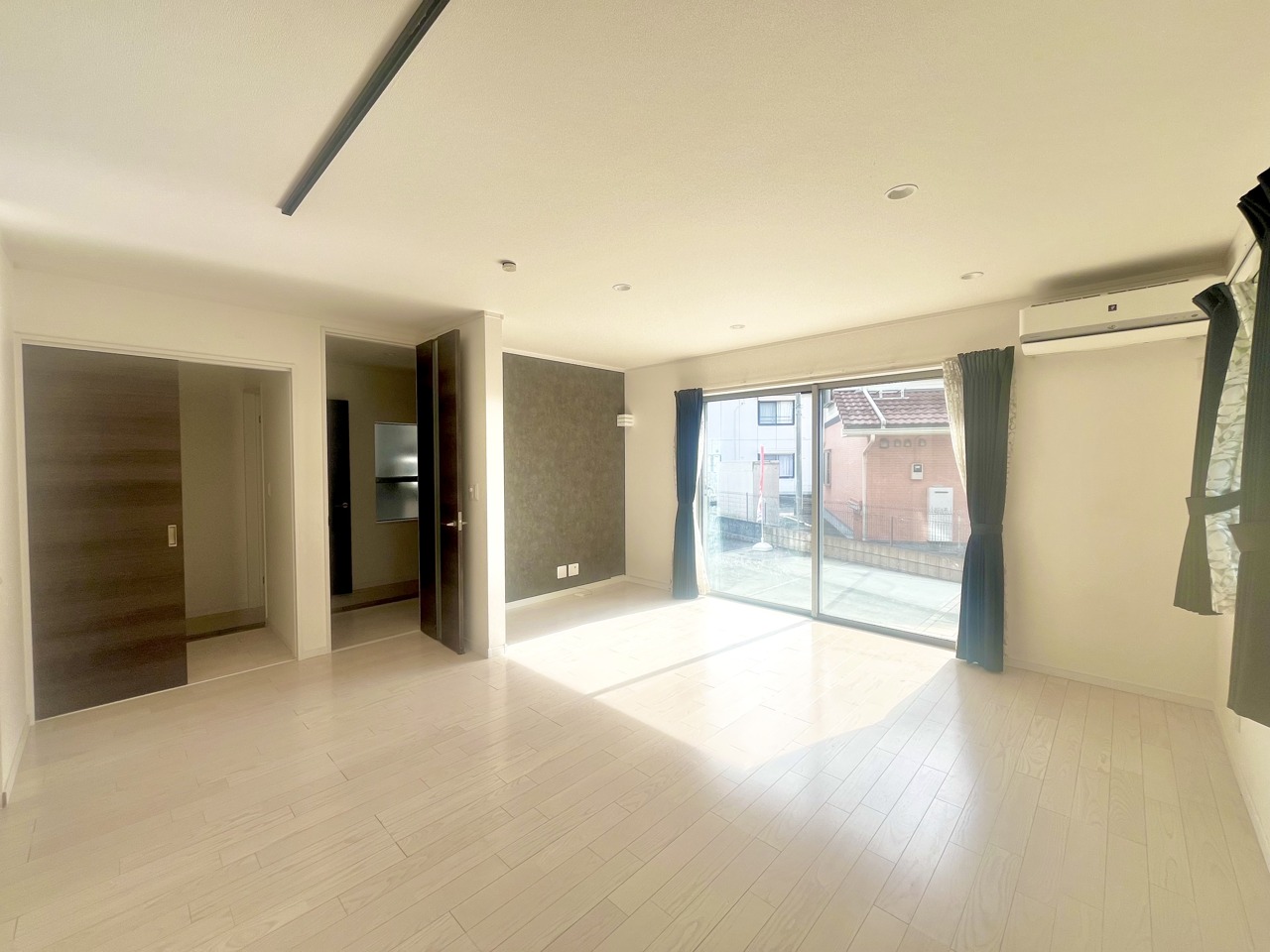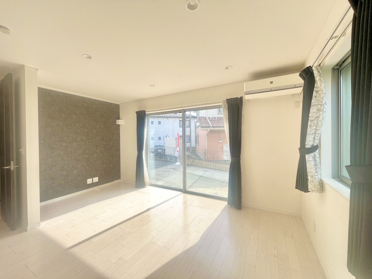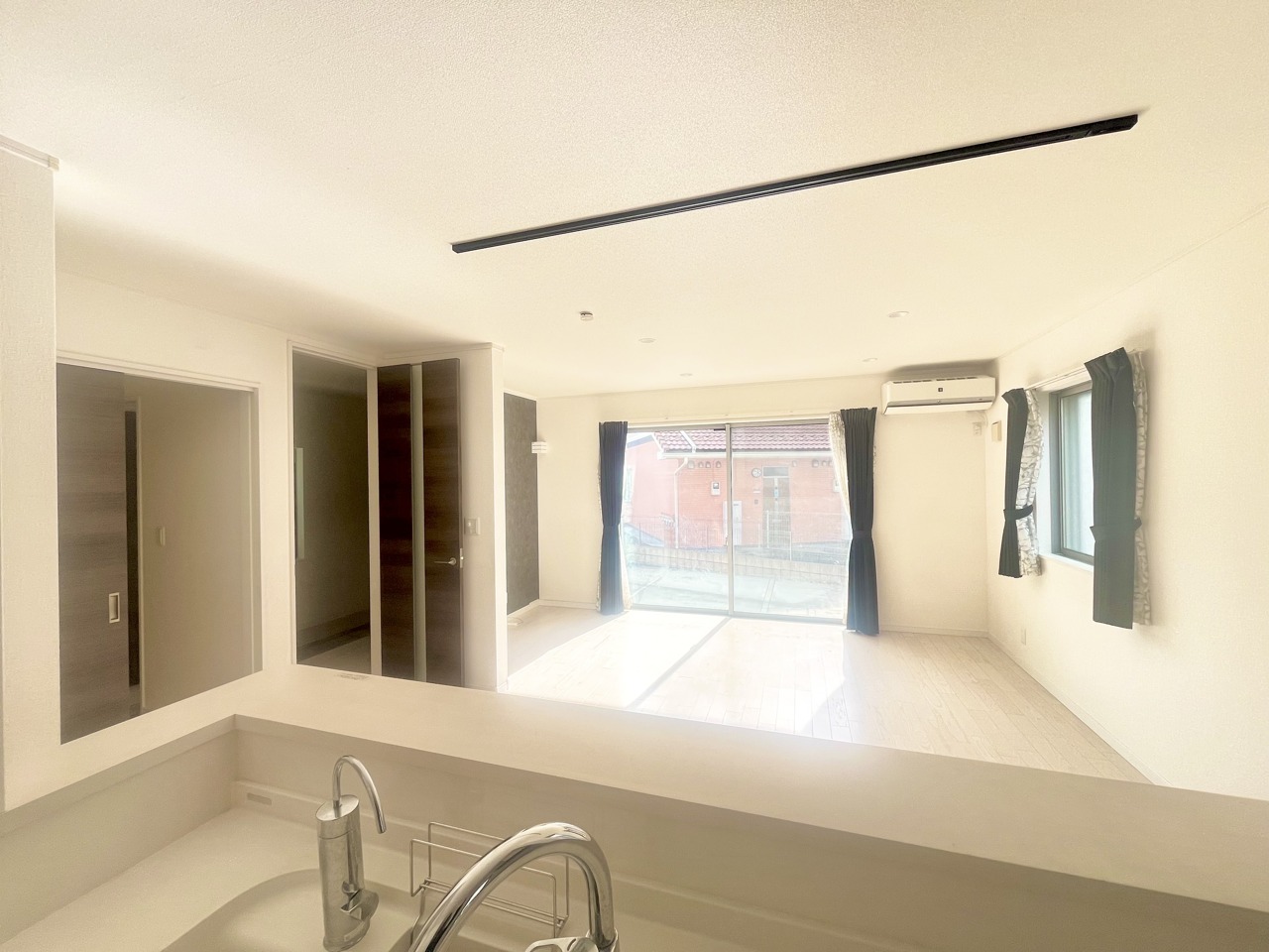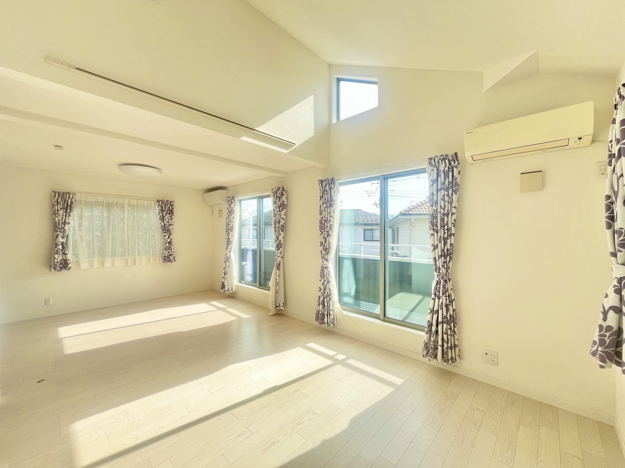 大きな開口部から明るい光が差し込む、日中の室内の明るさがこの部屋の魅力です。