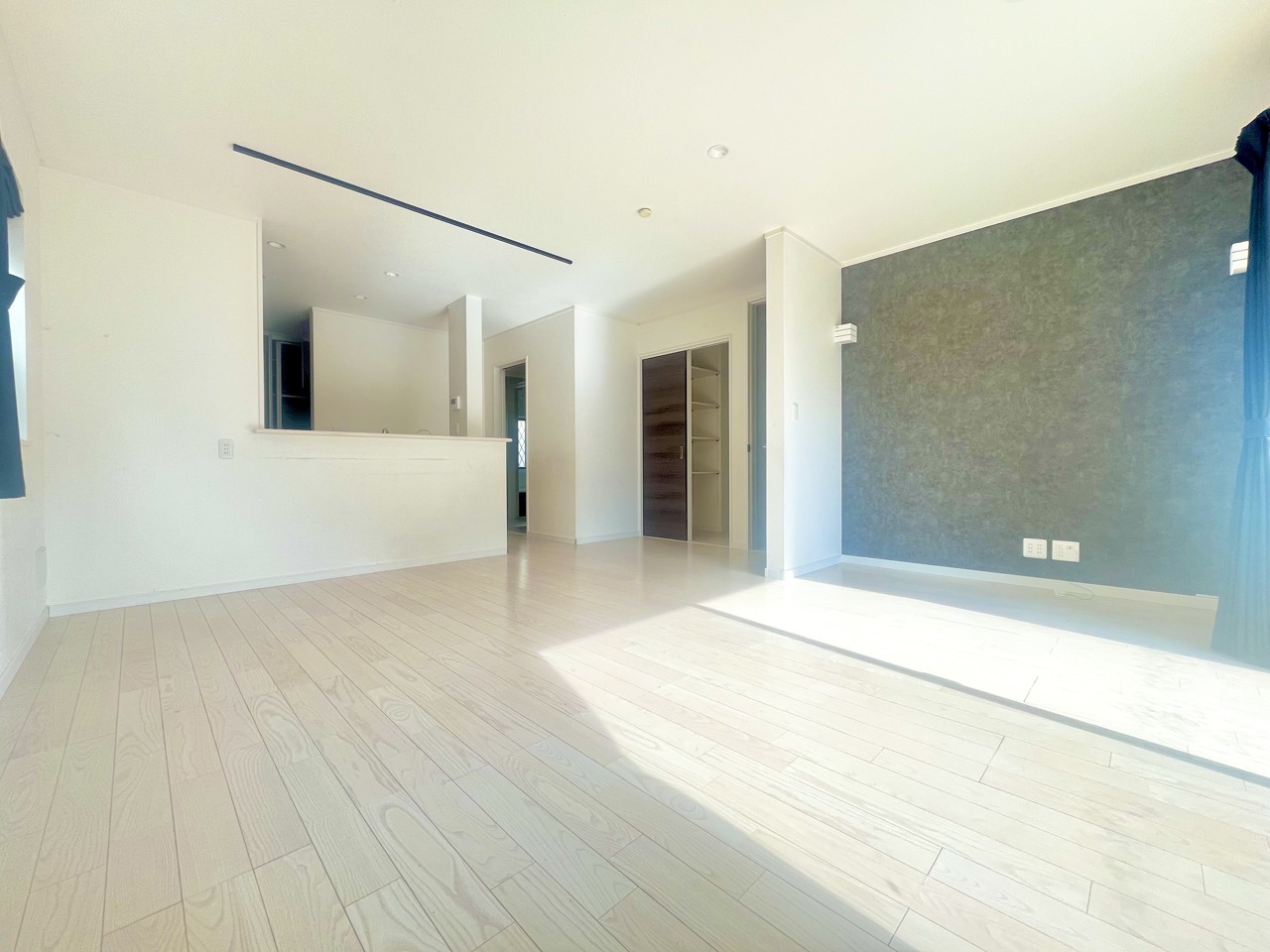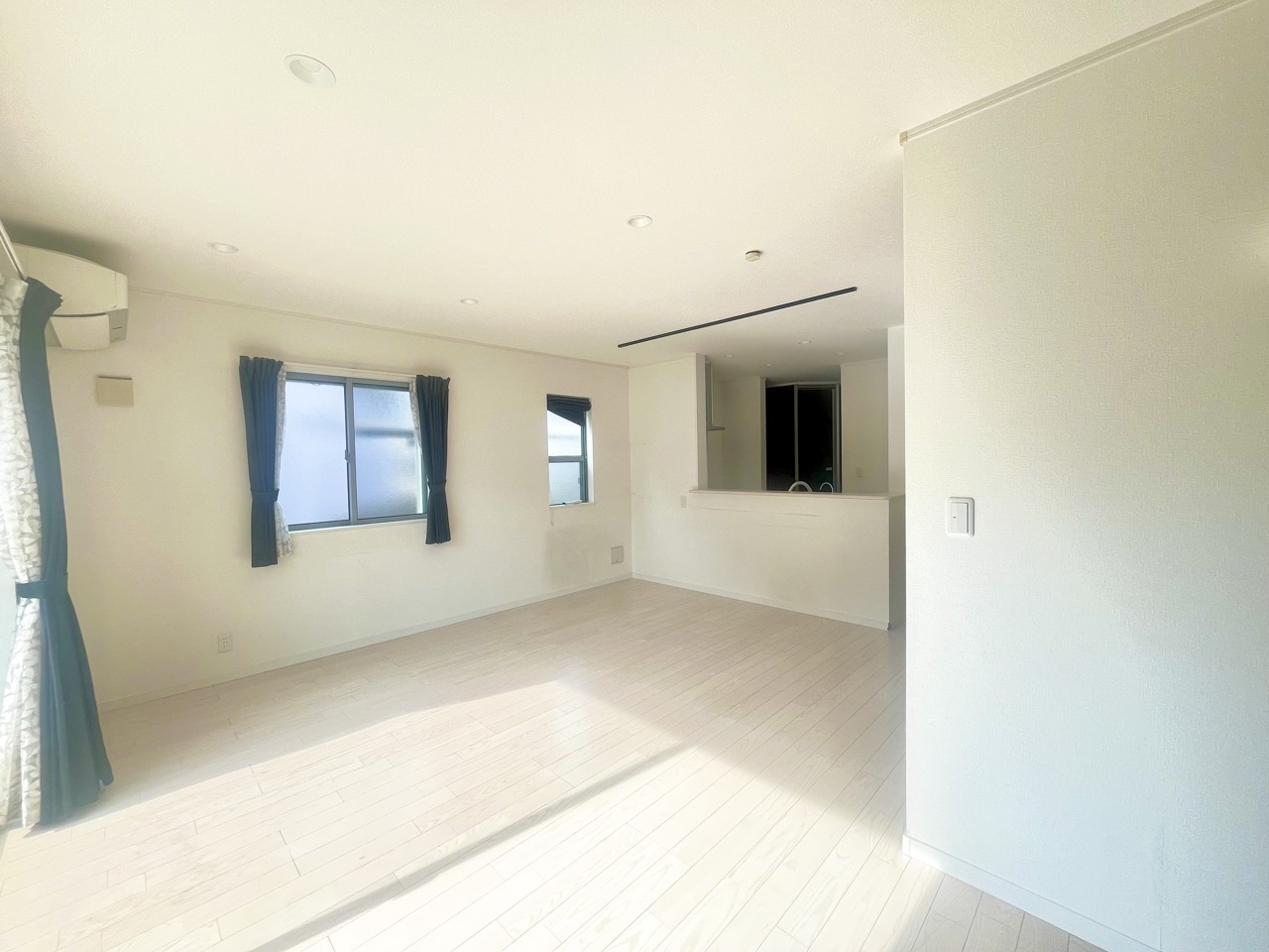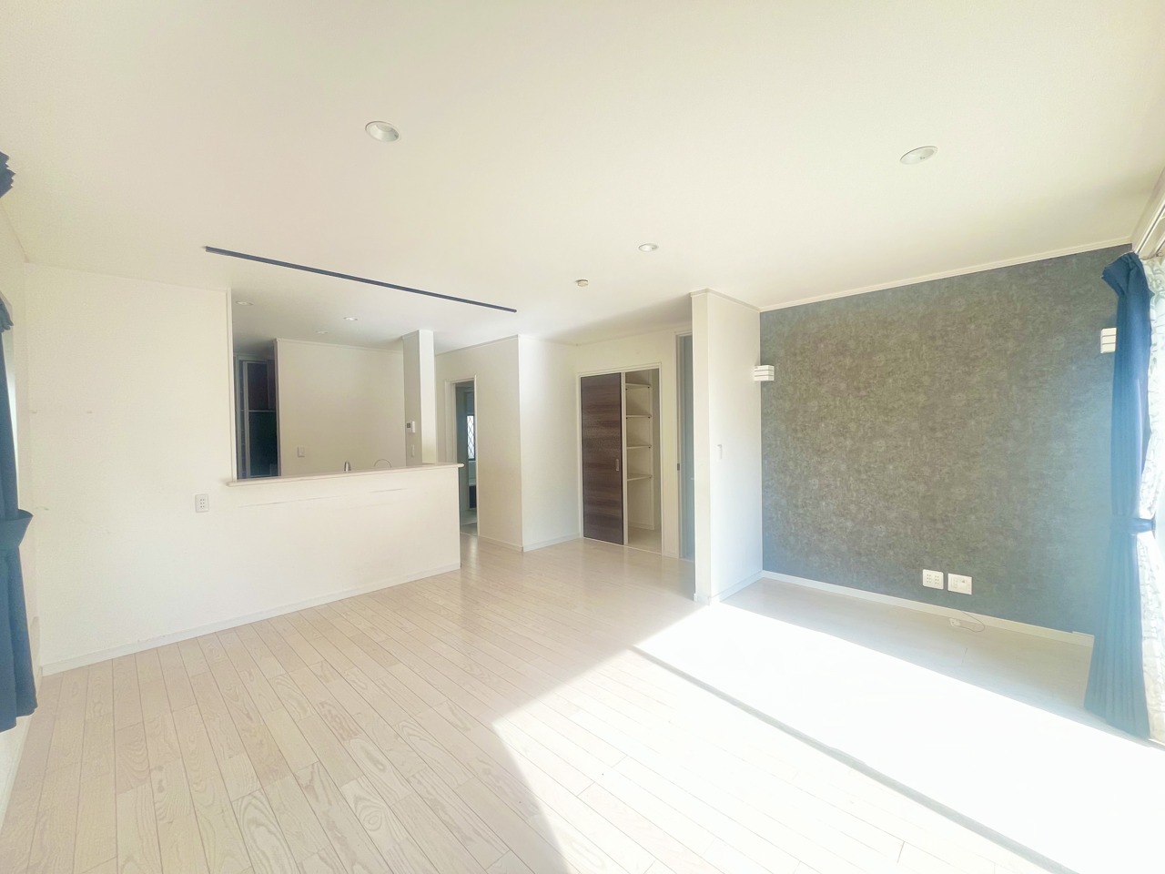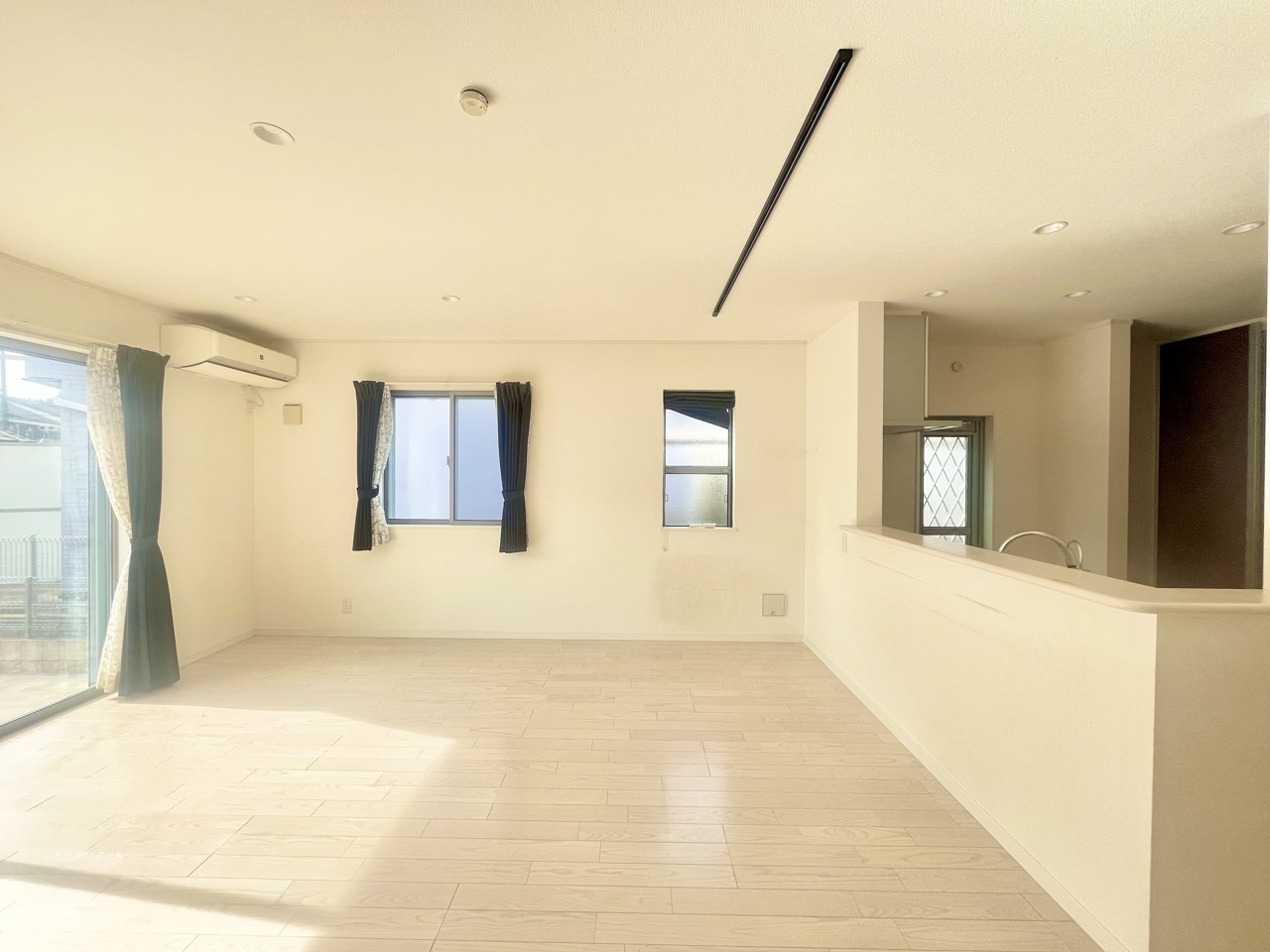 大きな開口部から明るい光が差し込む、日中の室内の明るさがこの部屋の魅力です。