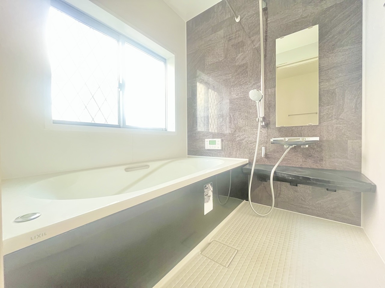 落ち着いた色味の浴室で1日の疲れをゆっくりと癒してください。