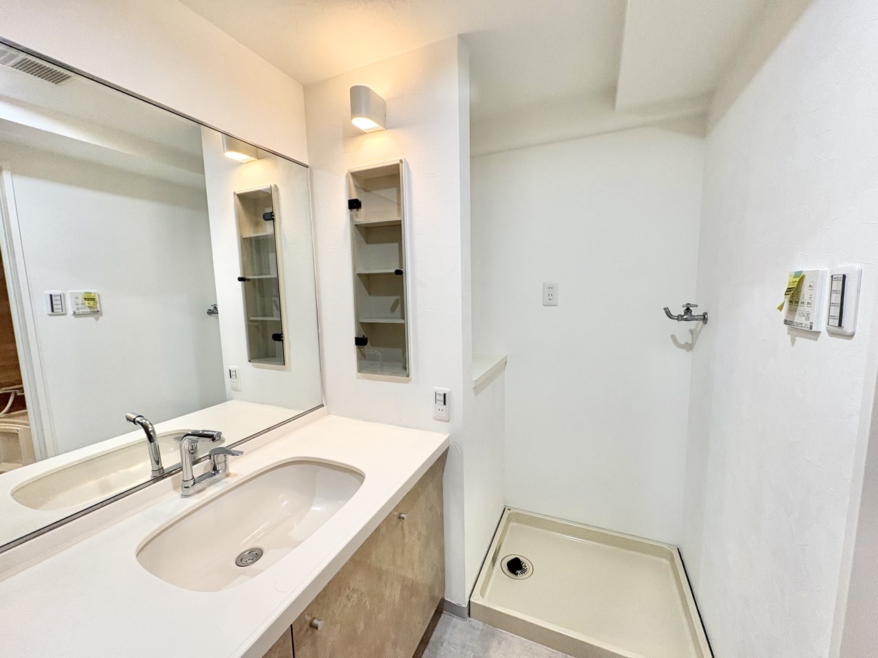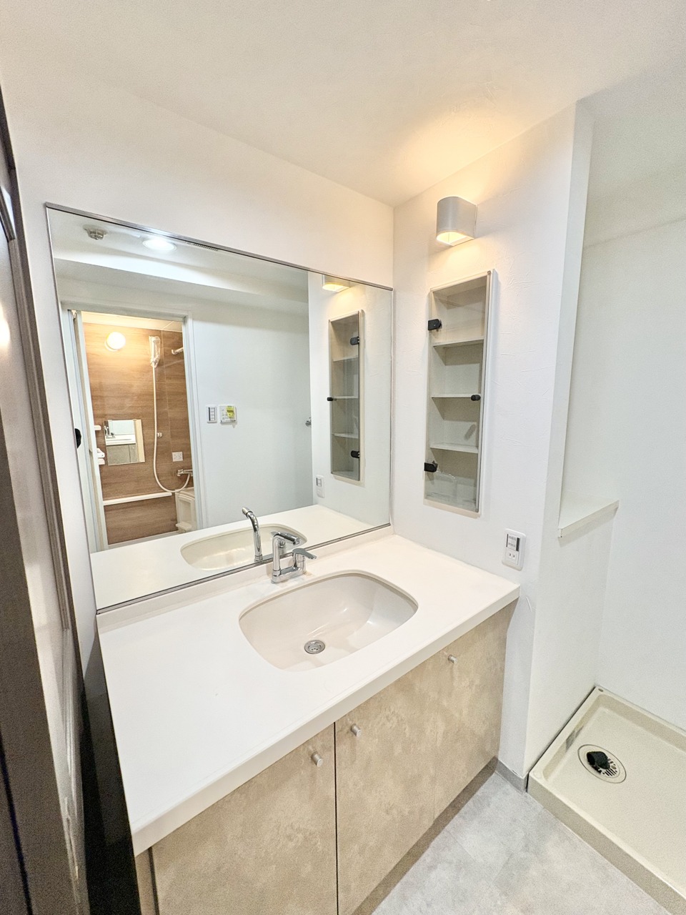清潔感あふれる空間に、機能美が光る洗面スペース。