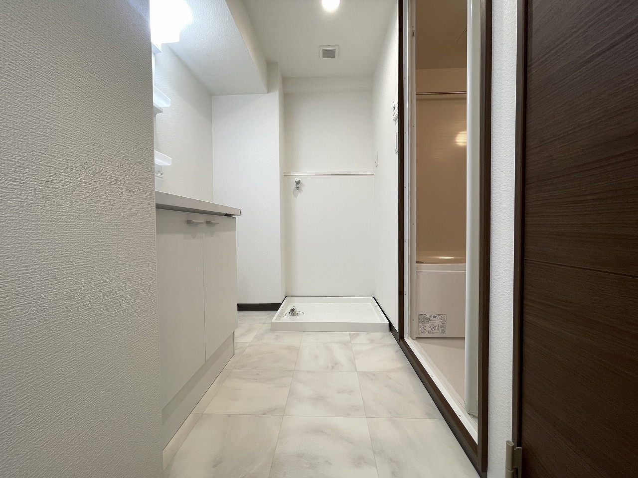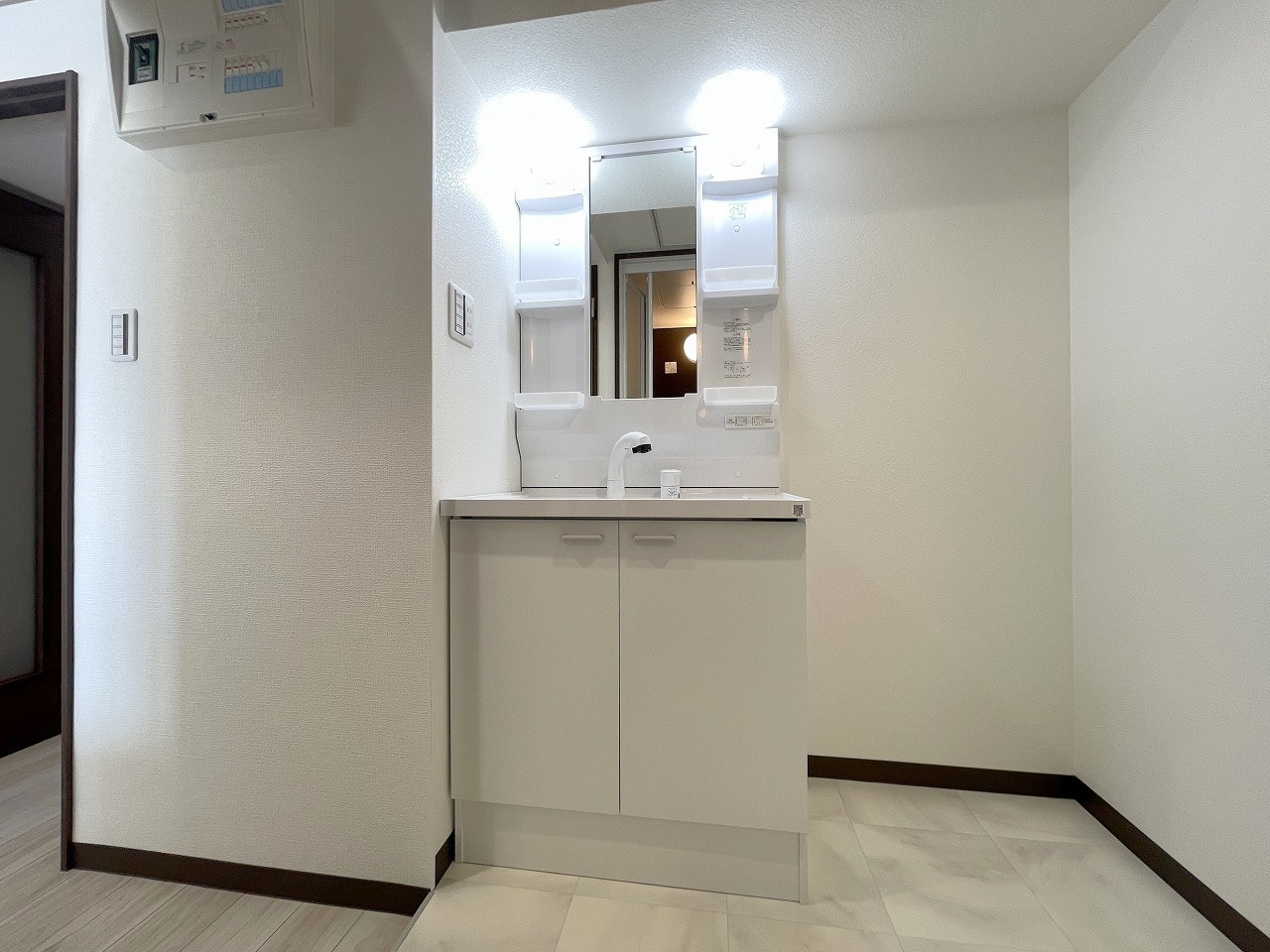 収納力と機能性に優れた、お手入れラクラク洗面化粧台。