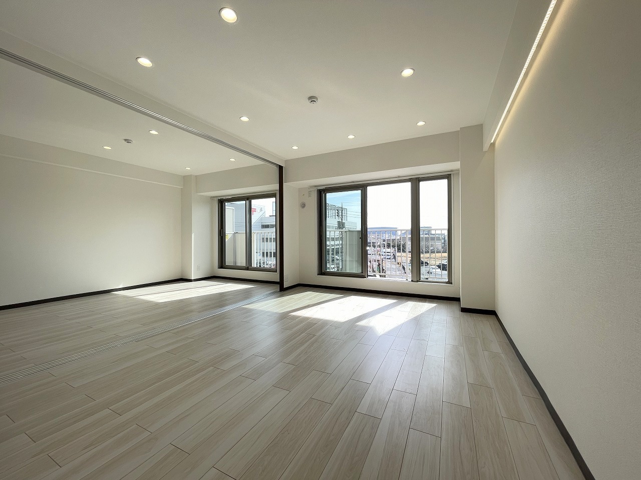 LDK+隣接洋室、開放すれば広々空間に。おもてなしスペースにもどうぞ。
