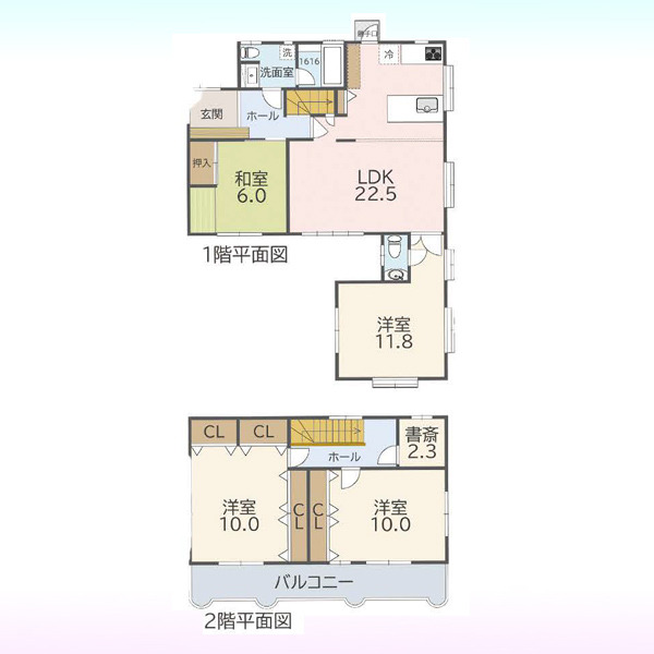 | 間取 | 4SLDK (LDK22.5帖、和室6帖、洋室11.8帖、洋室10帖、洋室10帖) | ||