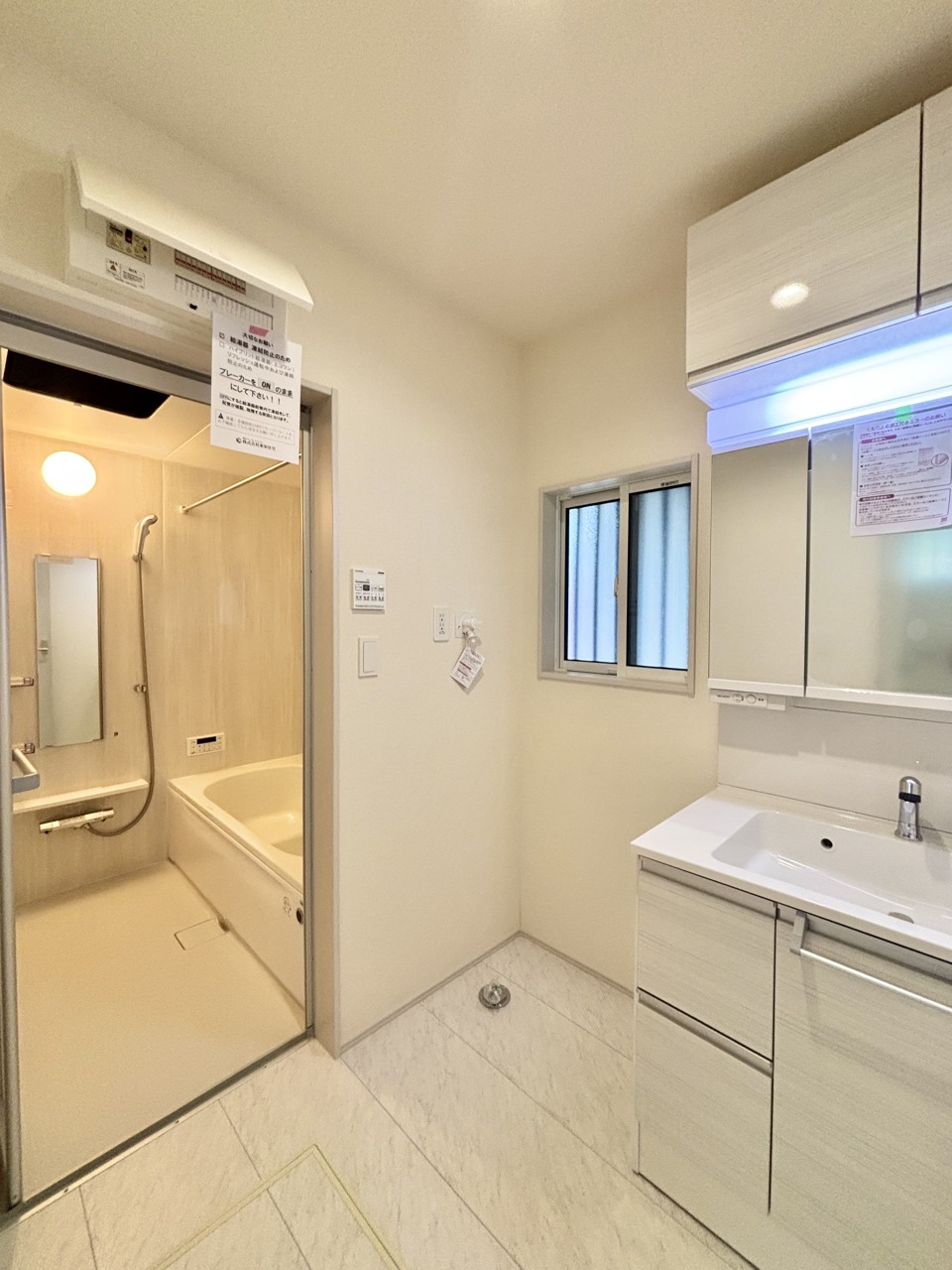 使い勝手の良い洗面台、窓があることで換気もしやすく清潔感のある空間を保てます。