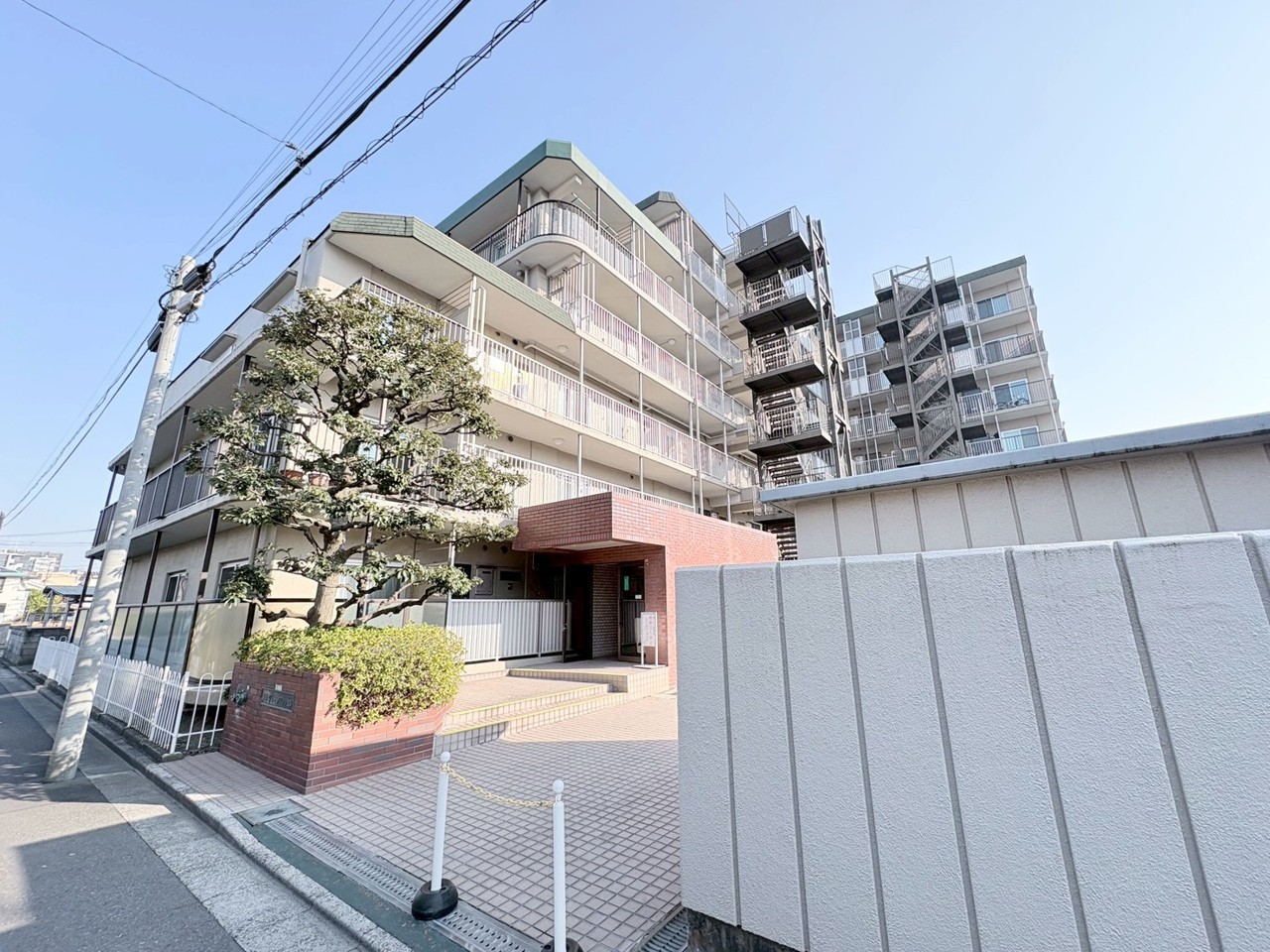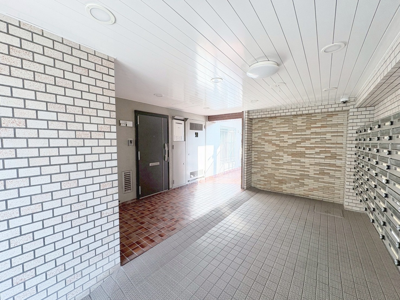 レンガ調のエントランスが印象的な、落ち着きのある佇まい。