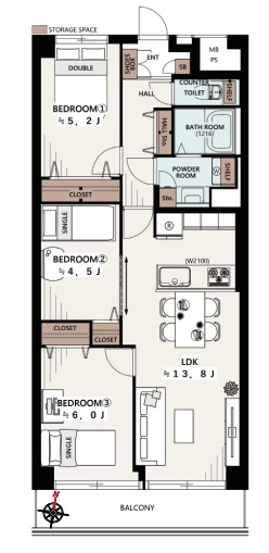 | 間取 | 3LDK (LDK13.8帖、洋室6帖、洋室5.2帖、洋室4.5帖) | ||