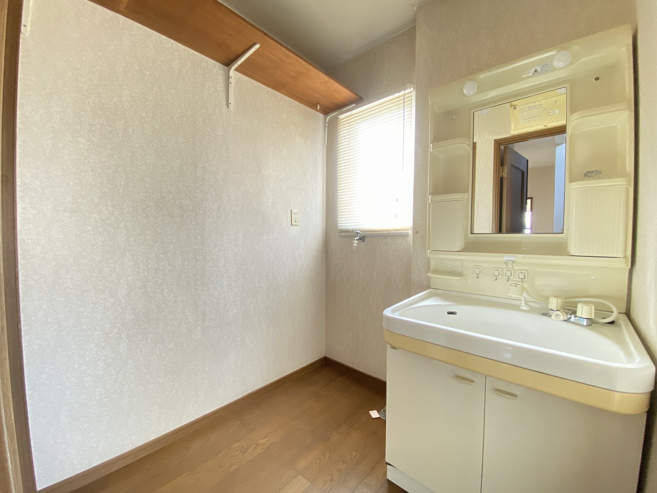 化粧台はやっぱり色が一番。シャワーヘッド付きの収納充実タイプです。