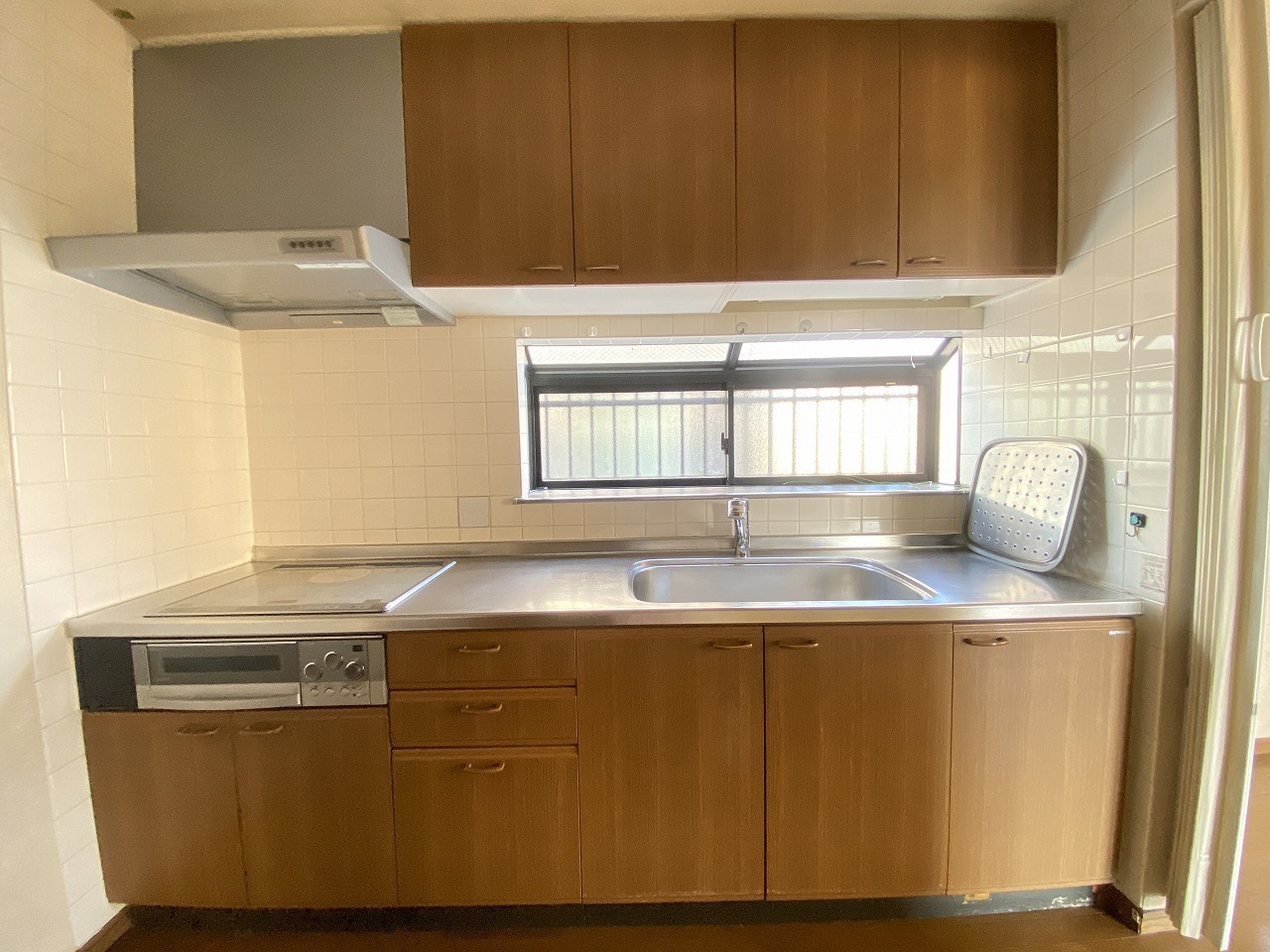 手を伸ばせばそこに収納が。安定した使用感の吊戸棚つきのキッチン空間。