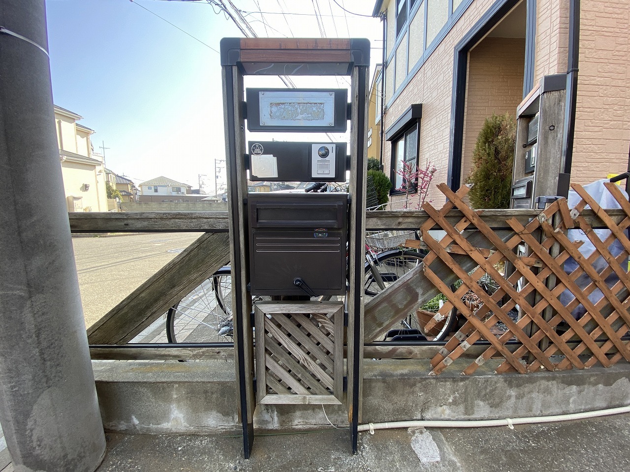 ポスト、表札、インターホンを兼ねる機能門柱。シンプルな外観で容量のあるポストです。