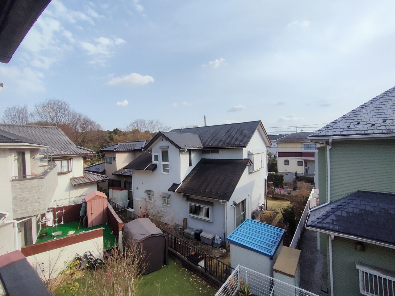 住宅街の中の一戸建て、あたりはほとんど住宅です。
