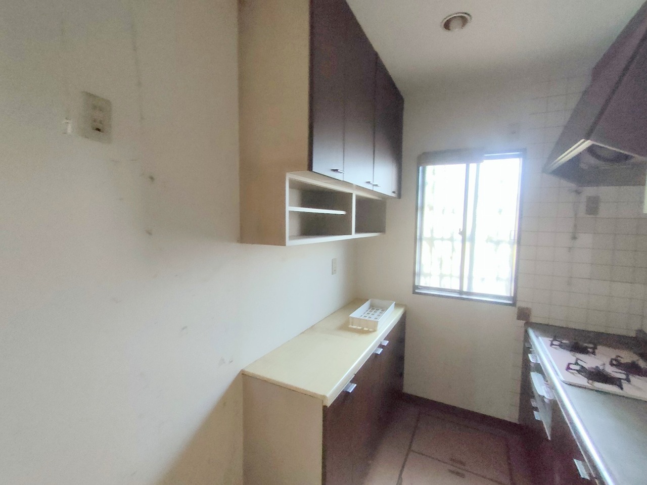 手を伸ばせばそこに収納が。安定した使用感の吊戸棚つきのキッチン空間。