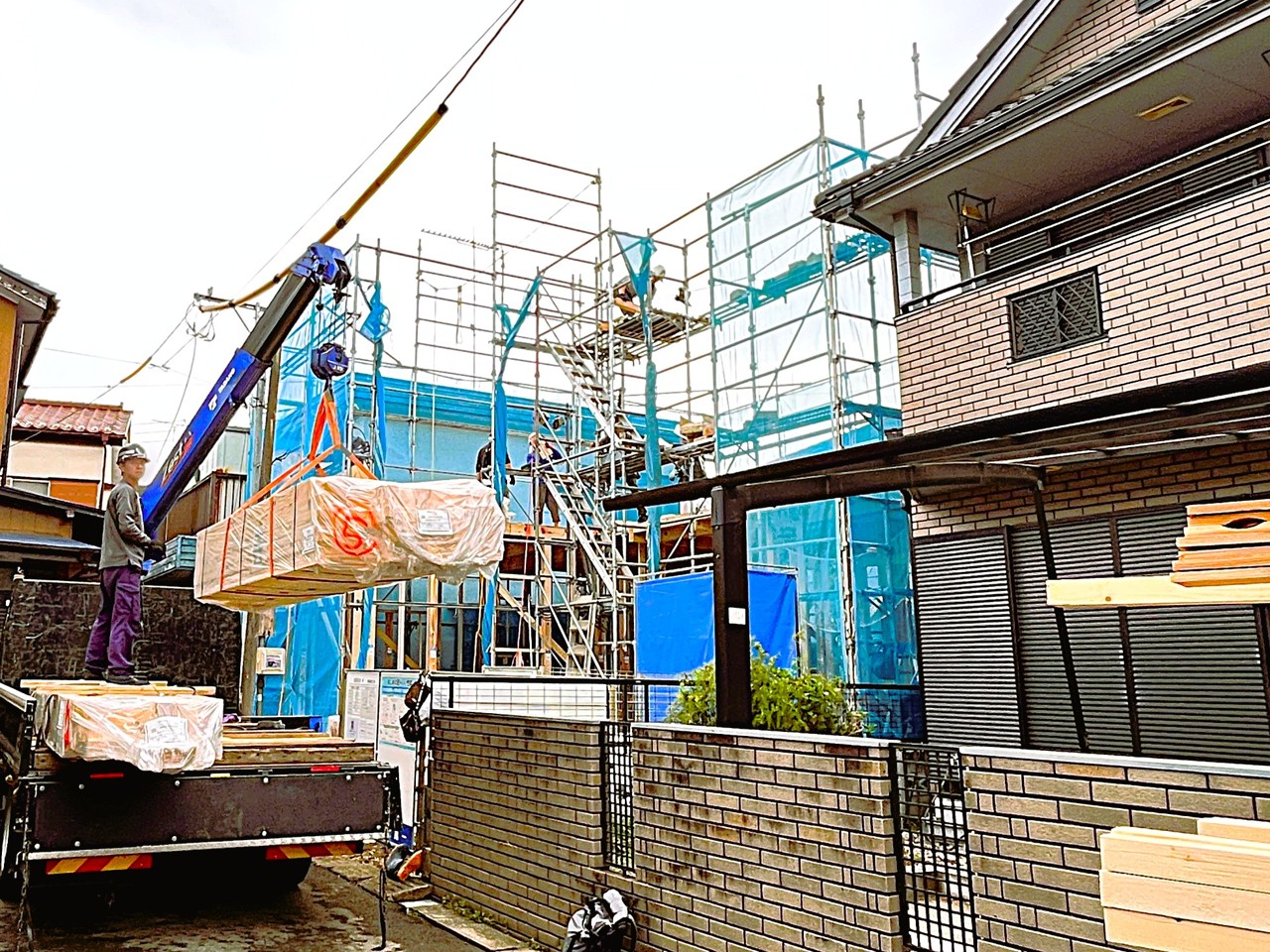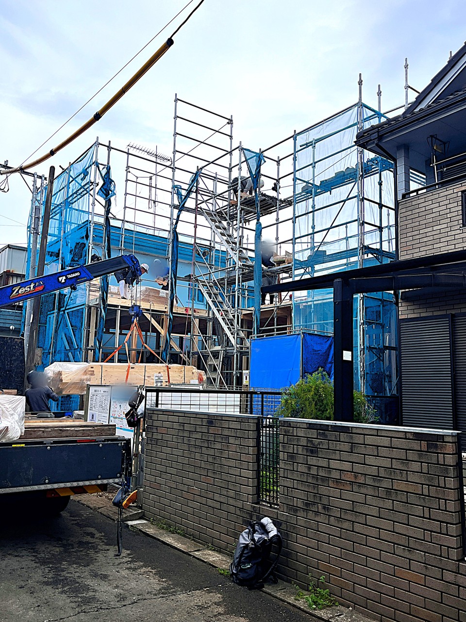 上棟開始しました。 建物完成は令和8年6月下旬予定