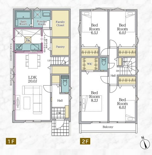 | 間取 | 4LDK (LDK20帖、洋室8.2帖、洋室6.5帖、洋室6帖、洋室6帖) | ||
