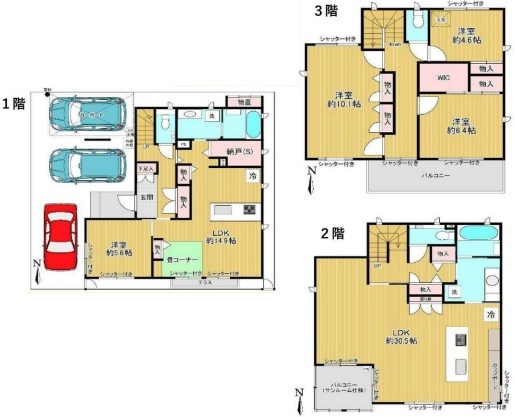 | 間取 | 4LDK + 1LDK+3LDK (LDK30.5帖、LDK14.9帖、洋室10.1帖、洋室6.4帖、洋室5.6帖、洋室4.6帖) | ||