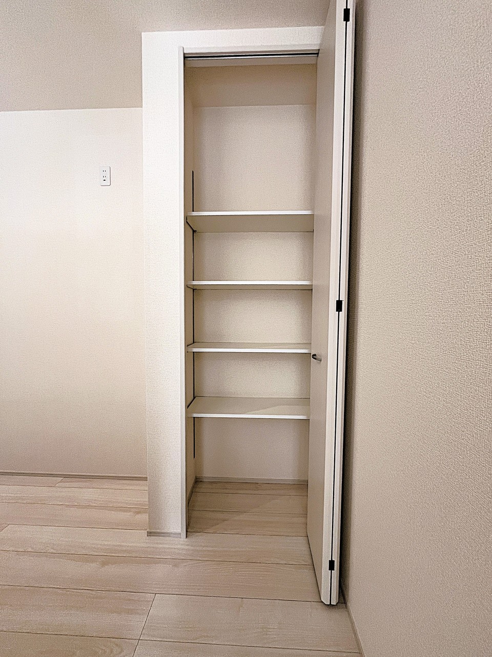 大容量のパントリーがございますので、非常食や食品のストックも沢山置けます。