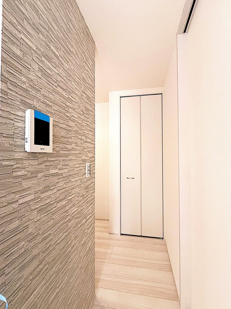 洗面スペースとは区分されたランドリースペース 生活感が削減できます 隣にはウォークインクローゼットがあり衣服の整理がしやすく便利です
