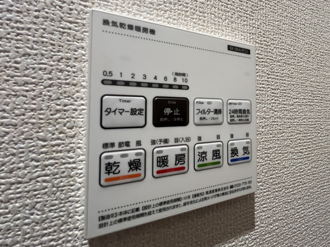 花粉や雨の日、寒い冬の時期に嬉しい浴室乾燥機。換気機能で入浴時に湿気を換気しカビの防止にもなります。