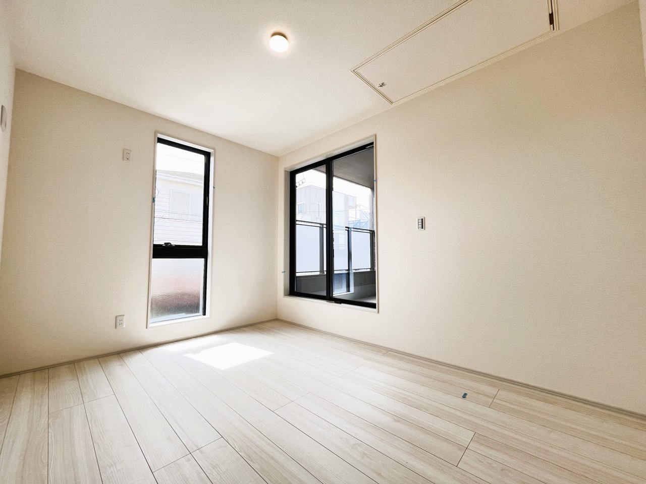 バルコニーに面した6.55帖の洋室。開口部からは優しい陽光が差し込み心地よい風が通り抜けます。