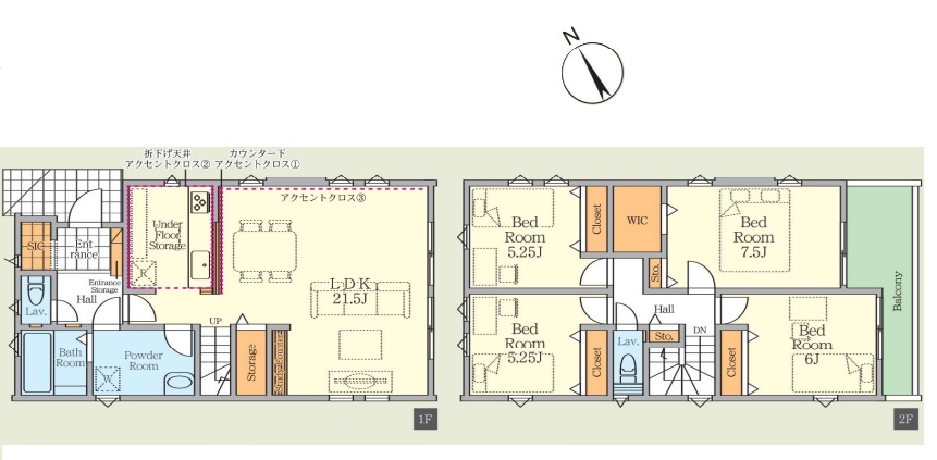| 間取 | 4LDK (LDK21.5帖、洋室7.5帖、洋室6帖、洋室5.25帖、洋室5.25帖) | ||