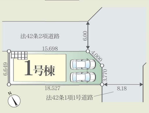 | 接道 | 北側6M公道に15.69M接道 東側8.18M公道に3.77M接道 |