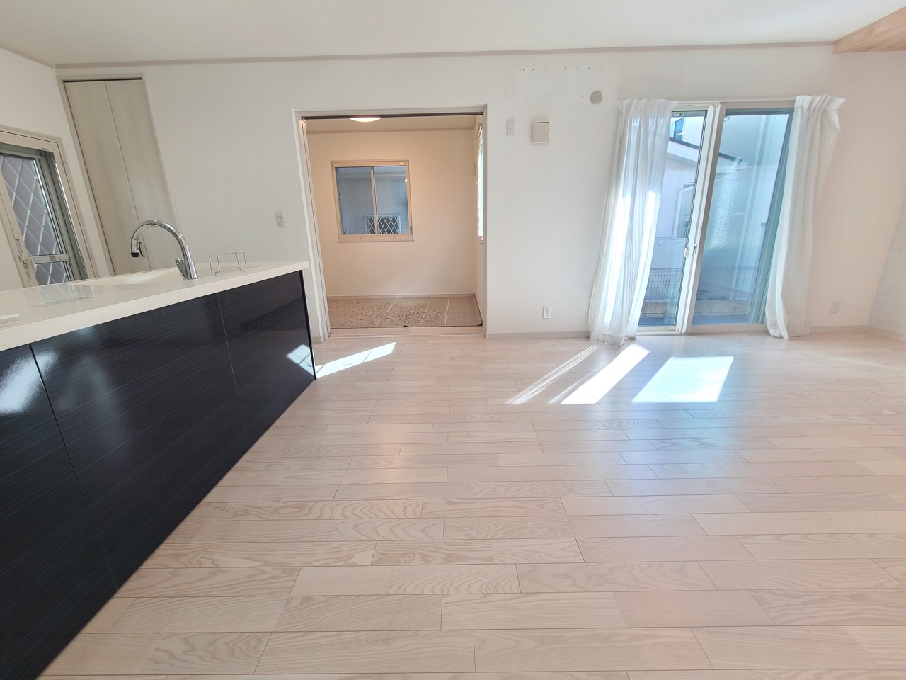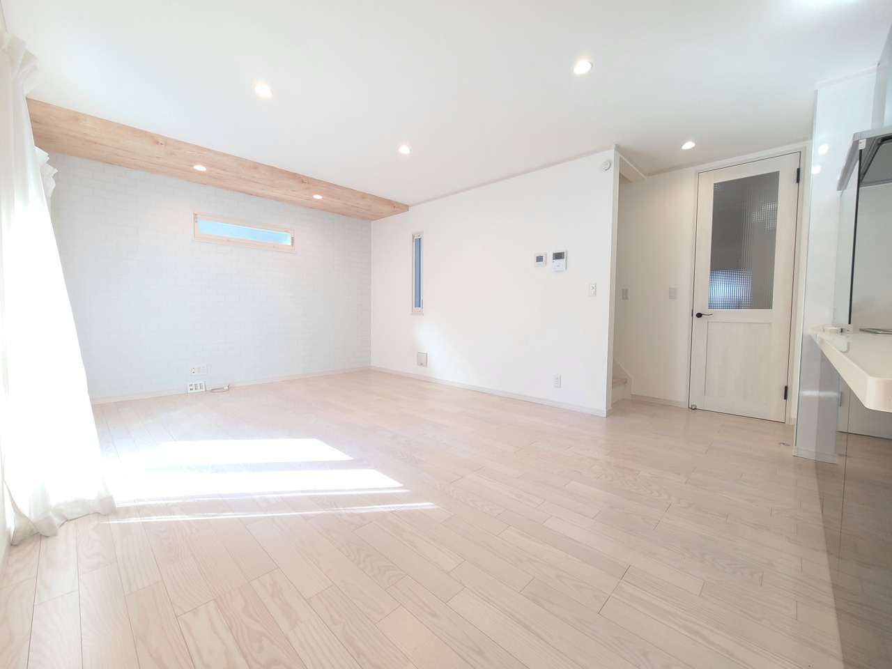 明るく開放的な空間に、木目の床が温もりを添える住まい