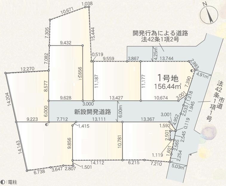 | 土地面積 | 156.44m² 公簿 (私道230.39m²別に有、私道持分比率:1/8) | ||