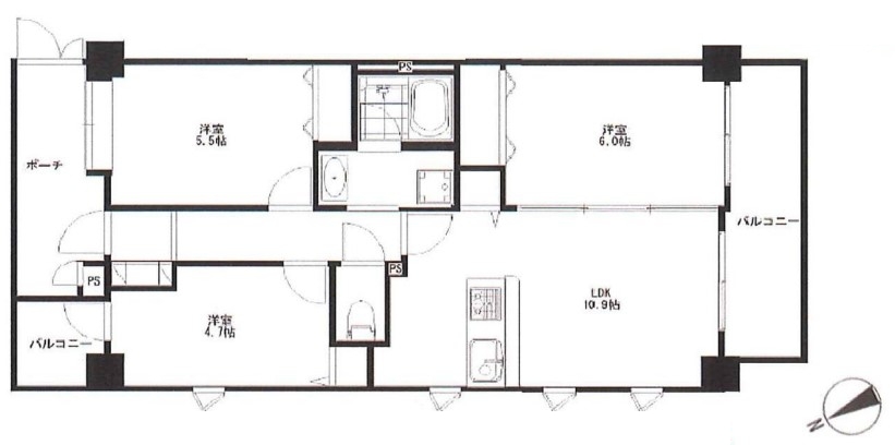 | 間取 | 3LDK (LDK10.9帖、洋室6.0帖、洋室5.5帖、洋室4.7帖) | ||