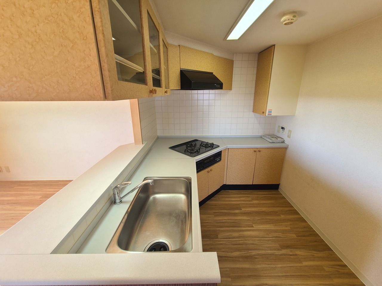 温かみのある木目調のキッチン空間で、心地よいひとときを