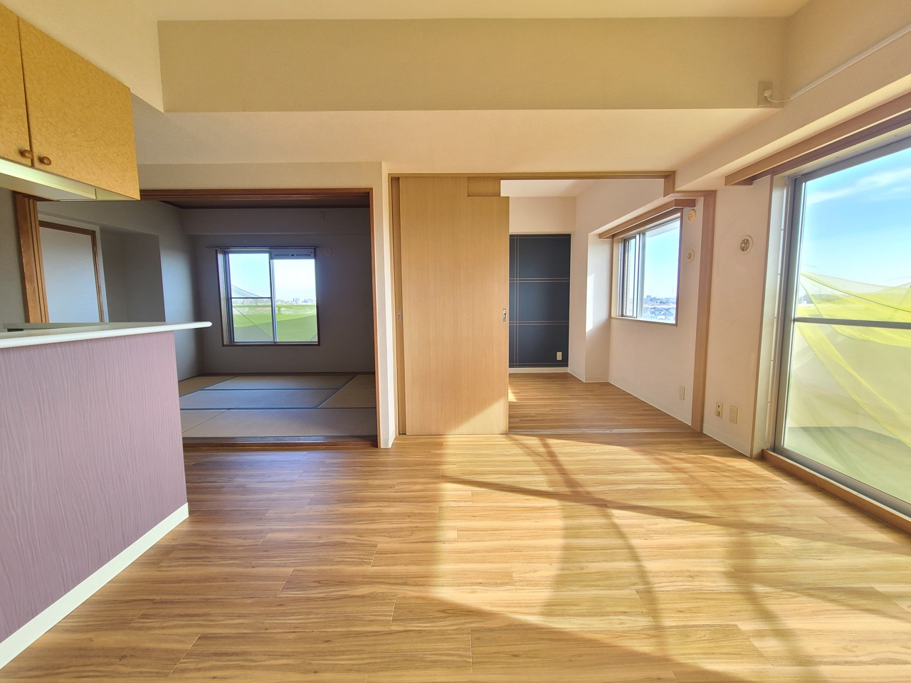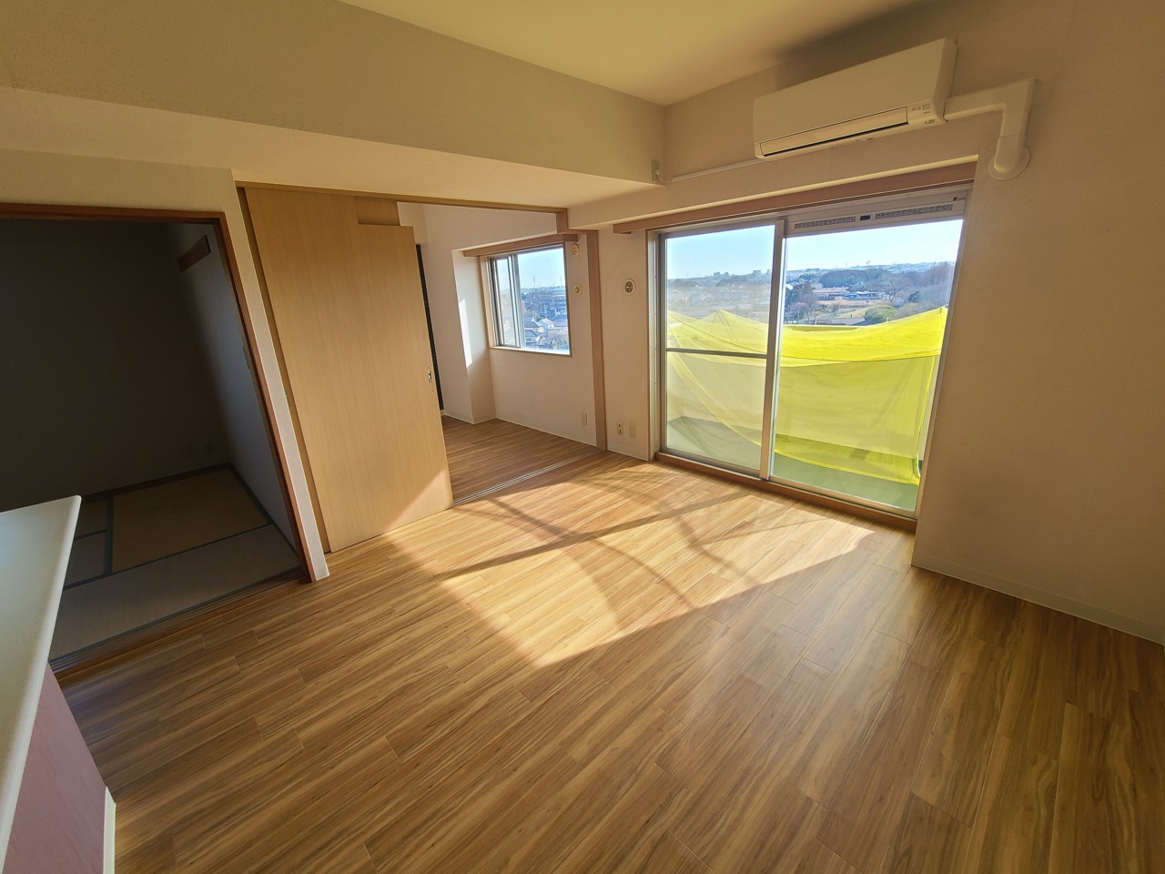 木目調の床に柔らかな光が広がる、心地よい空間。