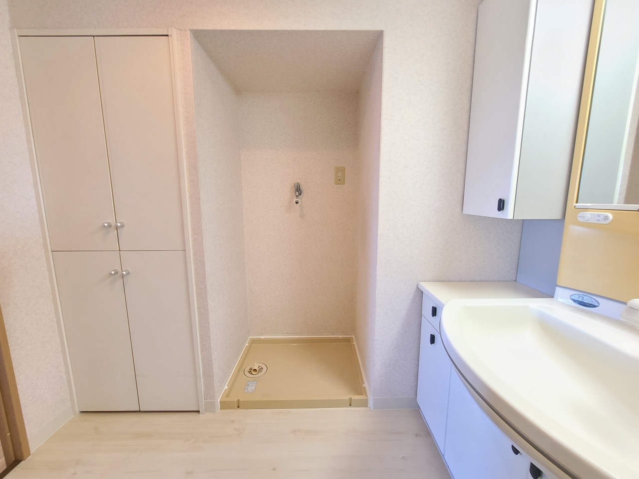 清潔感あふれる洗面空間で、一日を心地よくスタート。