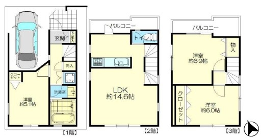 | 間取 | 3LDK (LDK14.6帖、洋室6.9帖、洋室6.0帖、洋室5.1帖) | ||