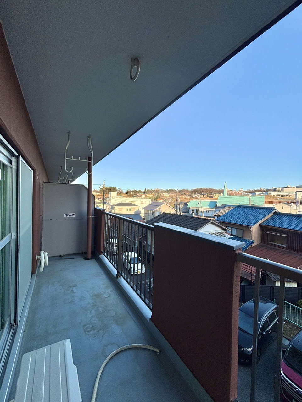 陽ざしが差込む明るいバルコニー。奥行きのあるバルコニーはお洗濯時に助かります。