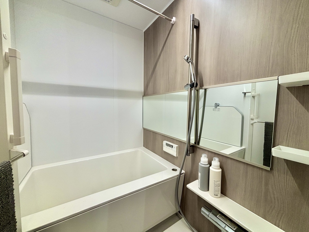 落ち着いた色味の浴室で1日の疲れをゆっくりと癒してください。