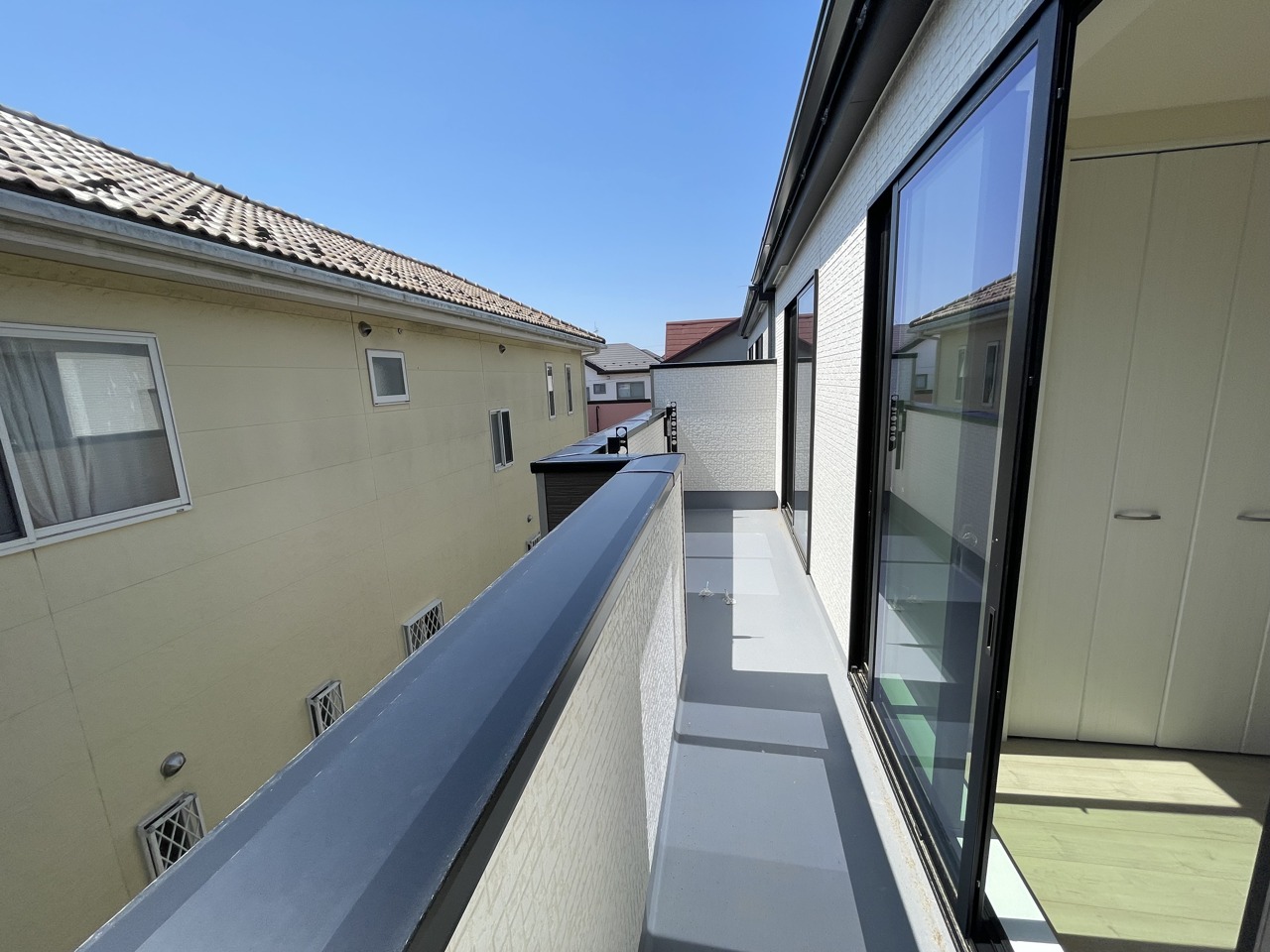 広々としたバルコニーから、空と隣家の緑が清々しい風景が広がります。