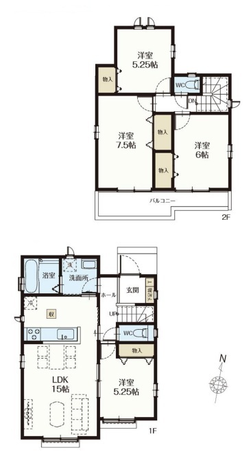 | 間取 | 4LDK (LDK15帖、洋室7.5帖、洋室6帖、洋室5.25帖、洋室5.25帖) | ||