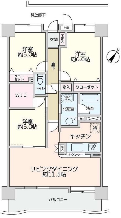 | 間取 | 3LDK (LD11.5帖、K2.6帖、洋室6.0帖、洋室5.0帖、洋室5.0帖) | ||