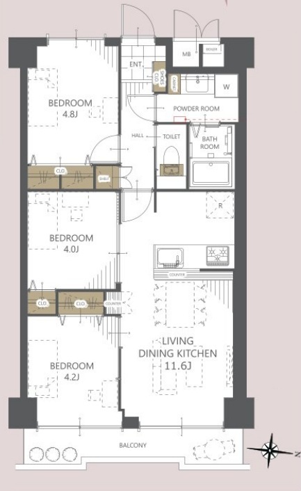 | 間取 | 3LDK + 洋4.8×1・洋4.2×1・洋4×1・LDK11.6×1 (LDK11.6帖) | ||