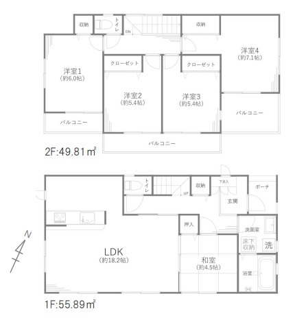 | 間取 | 5LDK (LDK18.2帖、和室4.5帖、洋室7.1帖、洋室6帖、洋室5.4帖、洋室5.4帖) | ||