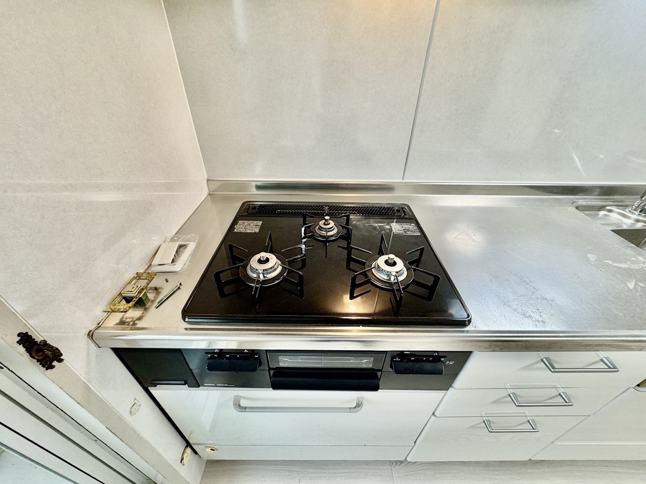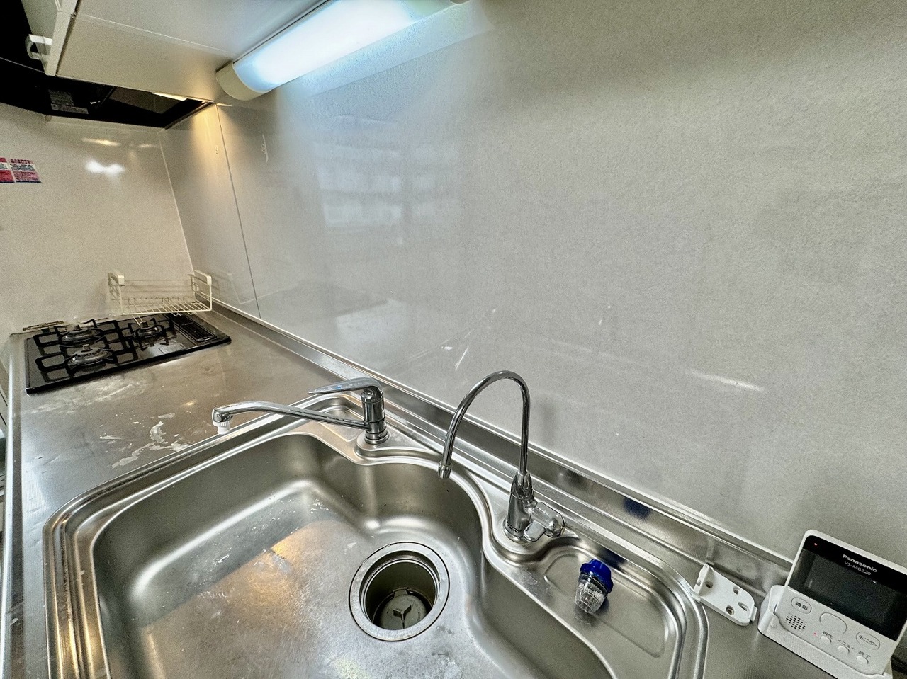 手を伸ばせばそこに収納が。安定した使用感の吊戸棚つきのキッチン空間。