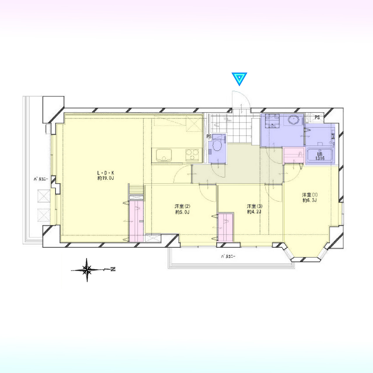 | バルコニー面積 | 13.11m² 南向き | ||
