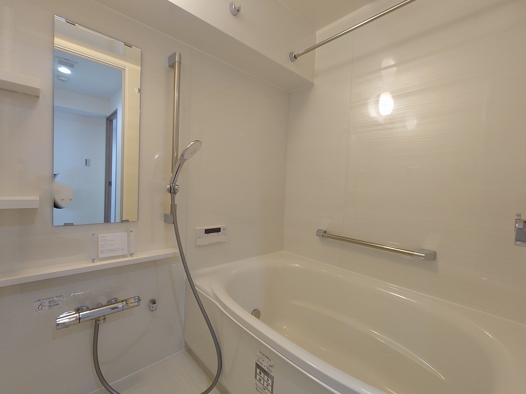 バスユニット、浴室乾燥機、手すり付き。