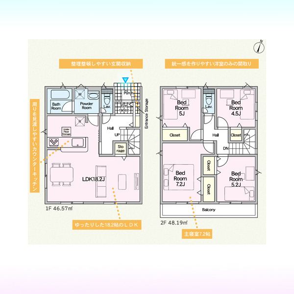 | 間取 | 4LDK (LDK18.2帖、洋室7.2帖、洋室5.2帖、洋室5帖、洋室4.5帖) | ||