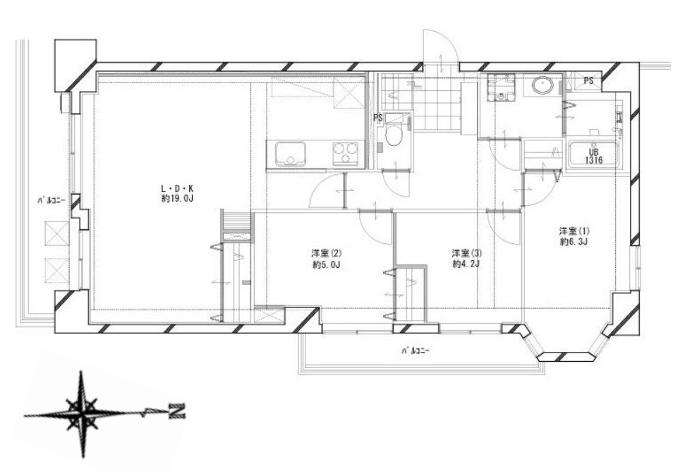 | 間取 | 3LDK (LDK19.0帖、洋室6.3帖、洋室5.0帖、洋室4.2帖) | ||