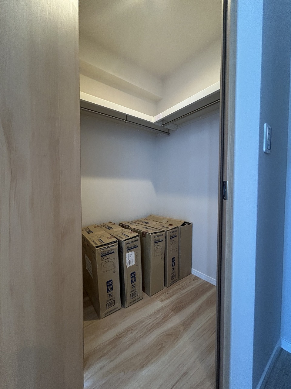 季節物の衣類もスッキリ収納できる、ウォークインクローゼット。