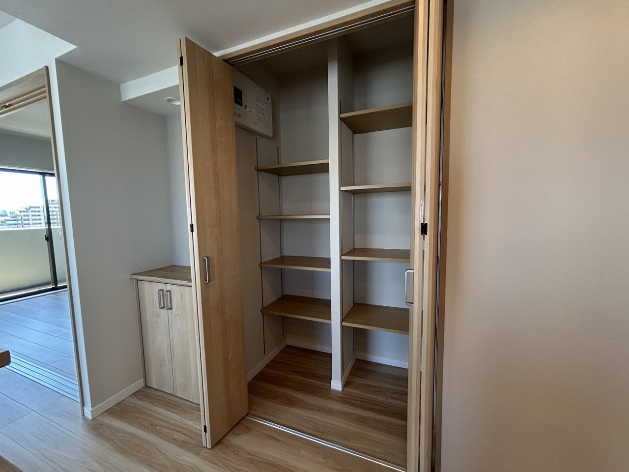 廊下や玄関の共用部には、こんな収納があるととっても便利です。