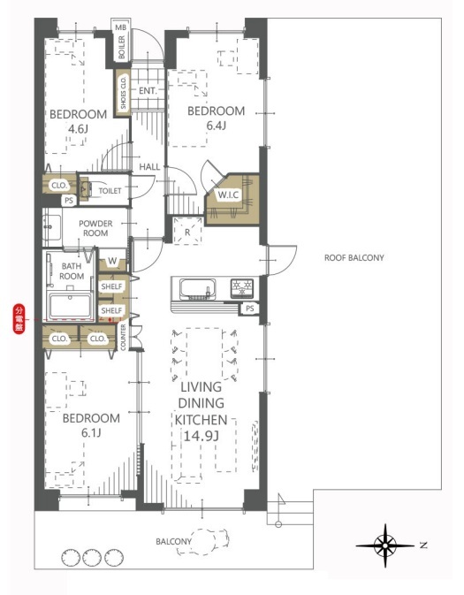 | 間取 | 3LDK + 洋6.4×1・洋6.1×1・洋4.6×1・LDK14.9×1 (LDK14.9帖) | ||