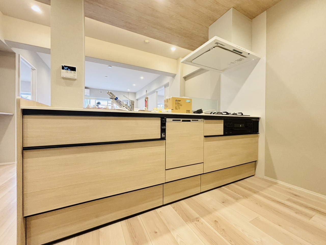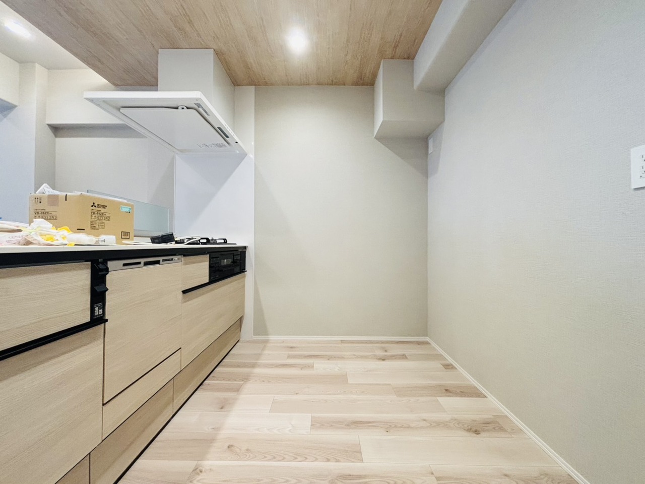 キッチン裏の空間もしっかり確保。カップボードも大きなものを置けそうです。