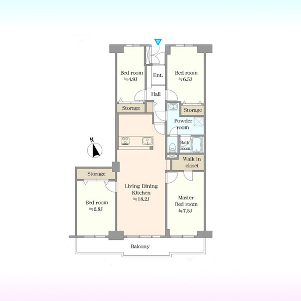 | 間取 | 4LDK (LDK18.2帖、洋室7.5帖、洋室6.8帖、洋室6.5帖、洋室4.9帖) | ||