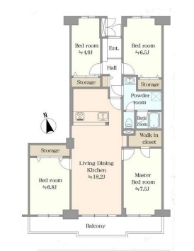 | 間取 | 4LDK (LDK18.2帖、洋室7.5帖、洋室6.8帖、洋室6.5帖、洋室4.9帖) | ||